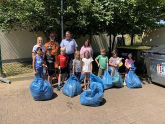 Schülerinnen und Schüler der Kapersburgschule sammelten im Laufe des Schulvormittags und in der Ganztagsbetreuung auf verschiedenen Schulwegen in Ober- und Nieder-Rosbach achtlos weggeworfenen Müll. Aufgrund der extrem hohen Temperaturen wurde bezüglich der eigentlich geplanten Laufwege nur ein verkürztes und den Witterungsbedingungen angepasstes Programm gefahren. Trotzdem konnten die Gruppen insgesamt sieben Säcke Müll sammeln.
