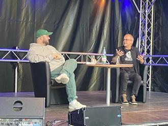 Mit „Wie Vater und Sohn“ eröffneten Henni und Max Nachtsheim am Freitag die Reihe und zogen das Publikum von Beginn an in ihren Bann. In der ersten Hälfte des Abends teilten die beiden humorvolle Anekdoten von ihren Erlebnissen auf Open-Air-Veranstaltungen mit dem Publikum. Henni Nachtsheim begeisterte mit Geschichten über seine Zeit bei den Rodgau Monotones und Badesalz, wobei besonders seine Einblicke hinter die Kulissen von Festivals für große Lacher sorgten. Ebenso spannend waren die Erzählungen darüber, wie die Rodgau Monotones in Frankfurt ihren Durchbruch erlebten. Aber auch Sohn Max erzählte, was er auf Veranstaltungen bereits Kurioses erlebt hatte. Im zweiten Teil wurden die Zuschauer aktiv in die Show einbezogen: Themenwünsche von einem Zettel bestimmten die improvisierten Gespräche der beiden Künstler, die sowohl zum Lachen als auch zum Nachdenken anregten.