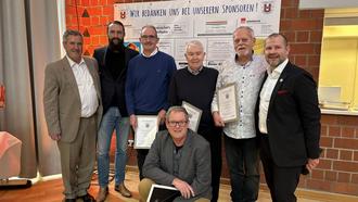 Mitgliederehrung von links: K-H Eckhardt (Ehrenpräsident), Alexander Engel(1. Vors.), Olaf Wörner, Wolfgang Kopp, Klaus Käding, Volkmar Später, Christoph Käding (Moderator und Ältestenrat).