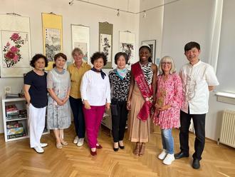 Mit herzlichen Worten würdigte nicht nur Martina Böhnke als Mitarbeiterin der Stadtbücherei die gelungene Ausstellung, sondern auch die amtierende Blütenkönigin Joyce I., welche die internationale Bedeutung der Ausstellung hervorhob. Joyce berichtete, dass sie aus Kamerun kommend, herzlich in Rosbach aufgenommen worden ist. „Rosbach ist eine Stadt, in der kulturelle Vielfalt aktiv gelebt wird und diese eindrucksvolle Präsentation der chinesischen Werke ist ein solches Beispiel auch für künstlerisches Engagement“, so die Blütenkönigin in ihrer Rede.
