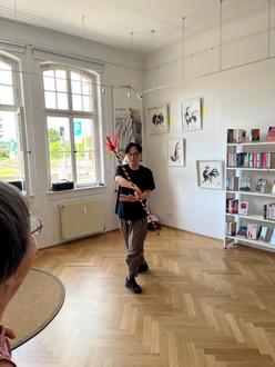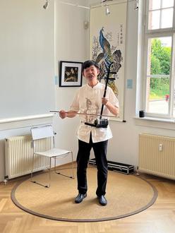 Die Finissage wurde von einem eindrucksvollen Rahmenprogramm begleitet: Künstler des Peking Oper Clubs Deutschland traten mit musikalischen und akrobatischen Darbietungen auf und sorgten für einen festlichen Abschluss der Ausstellung. Besonders hervorzuheben sind die ergreifenden Gesangseinlagen und das virtuose Spiel auf der chinesischen Geige, die das Publikum in Staunen versetzten. Mitgewirkt haben Frau Yamei Braun, Vorstandsvorsitzende des Clubs, Herr Yaping Dong, Künstlerischer Direktor, sowie Herr Yingshi Li und Herr Bangyi Dong, Mitglieder des Clubs.