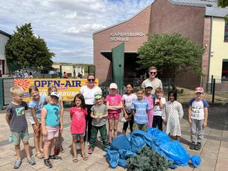 Trotz hochsommerlicher Temperaturen machten sich an diesem Tag die Schülerinnen und Schüler der verschiedenen AG-Gruppen und die Kinder der Schülerbetreuung JJ nach dem Mittagessen auf den Weg, um Müll in ihrer Umgebung einzusammeln.