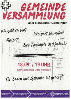 Am Mittwoch,18. September findet um 19.00 Uhr die Gemeindeversammlung in Ober-Rosbach statt. Herzliche Einladung dazu