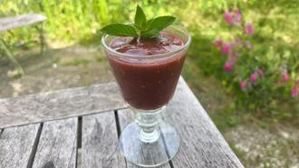 Beeren und Minze gründlich waschen. Mit Eiswürfeln solange mixen, bis eine cremige Masse entsteht. In Gläser umfüllen und mit ein paar Blättern Pfefferminze garnieren & genießen.