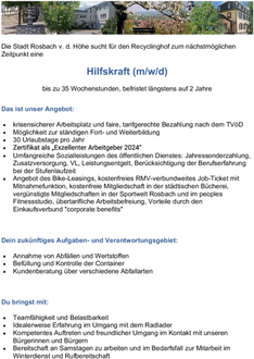 Die Stadt Rosbach v. d. Höhe sucht für den Recyclinghof zum nächstmöglichen Zeitpunkt eine