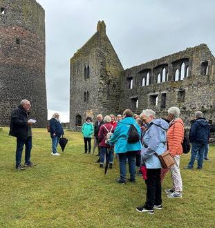 Anfang September unternahmen die Landfrauen aus Rodheim einen Ausflug nach Münzenberg. Dort waren sie verabredet mit den Landfrauen aus Wölfersheim-Melbach und zusammen ging es zur historischen Burg aus dem 12. Jahrhundert. Dort wartete bereits Wilfried Mohr aus Gambach (bekannt durch Mundartvorträge) auf die Besucherinnen und führte fachkundig über das Burggelände und durch die ehemaligen Räumlichkeiten, von denen man einiges noch erkennen konnte. So zum Beispiel die ehemalige Kapelle und die alte, sehr große Küche. Zur Bauzeit war es noch nicht üblich, die Wohnräume zu beheizen. Aus diesem Grund waren unter dem Wohnbereich die Pferdeställe untergebracht, welche die Wärme durch den Holzfussboden nach oben leitete. In einem weiteren, neueren Gebäude aus dem 14. Jh. ist deutlich ein Kamin zu sehen, hier wurde bereits geheizt.