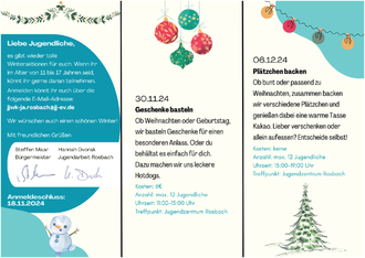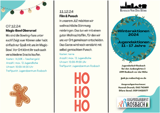 Den Flyer und das Anmeldeformular gibt es im JUZ Rosbach, auf der städtischen Internetseite, auf den Social-Media-Kanälen oder per E-Mail an jjwk-ja.rosbach@jj-ev.de. Dort wird auch rechtzeitig das Programm für die Weihnachtsferien veröffentlicht.
