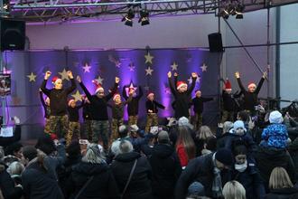 Das Bühnenprogramm bietet Weihnachtsaufführungen der „Regenbogen-Piepmätze“ sowie der „Tanzgarde Rodheim 1973 e.V.“