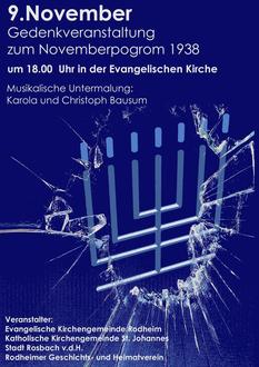 | 18:00 Uhr | Gedenkfeier zur Reichspogromnacht, Pfr. Berger |
