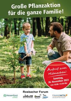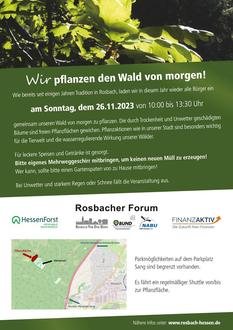Auch in diesem Jahr findet wieder eine große Pflanzaktion unter dem Motto „Wir pflanzen den Wald von morgen!“ im Rosbacher Wald statt, und zwar am Sonntag, den 26. November 2023 von 10.00 bis 13.30 Uhr oberhalb des Steinbruchs.