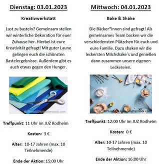 In der letzten Woche der Weihnachtsferien gibt es wieder ein vielfältiges Programm von der Jugendarbeit in Rosbach. Hier können Kinder und Jugendliche ab 10 Jahren an verschiedenen Aktionen und Ausflügen teilnehmen.