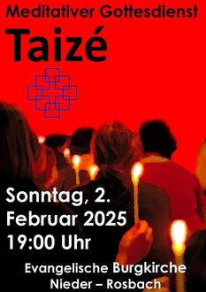 | 19.00 Uhr | Taizé-Gottesdienst, Pfrn. Welsch in der Burgkirche |