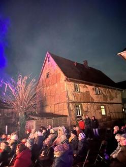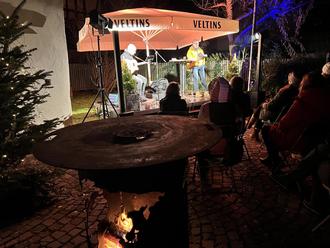Im Hof hinter dem ehemaligen Rathaus in Rodheim brannte in den Feuerkörben ein wärmendes Feuer und verbreitete eine gemütliche Weihnachtsatmosphäre. Mit Glühwein und frischen Brezeln wurden die Besucherinnen und Besucher auf einen unterhaltsamen Abend eingestimmt.