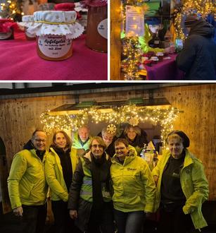 Im Angebot war auch leckeres, selbstgemachtes Apfelgelee und Marmelade aus dem Saft – u. a. verfeinert mit Zimt, Zitrone, Kürbis oder Kiwi. Alles zu sehr humanen Preisen. Denn Ziel war es, den Weihnachtsmarkt-Besuchern qualitativ hochwertige, überwiegend eigene Produkte ohne große Gewinnabsichten anzubieten und dabei mit ihrem Mehrwegsystem komplett auf Müll zu verzichten. Eigenschaften, die einen Weihnachtsmarkt heutzutage aufwerten, einzigartig machen und für weihnachtliche, besinnliche Atmosphäre sorgen – so die Hoffnung. Vielen Dank an das Team der Rodheimer Weihnachtsmänner, dass der Ortsverband – diesmal vertreten durch 8 Aktive – wieder dabei sein durfte.
