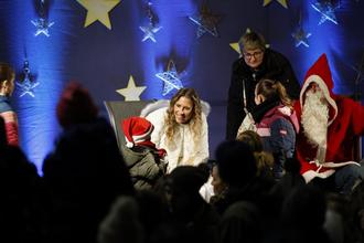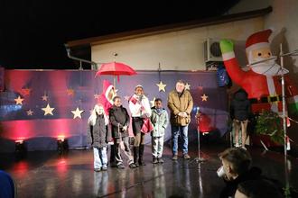 Schließlich belohnten der Nikolaus und Engel Sarah das geduldige Warten von Eltern und Kindern mit ihrem Erscheinen. Die beiden nahmen auf der Bühne ihre Plätze ein und zelebrierten die Bescherung.