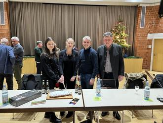 Auf der letzten Stadtverordnetenversammlung haben Blütenkönigin Mathilda I. und Erster Stadtrat Stephan Schmidthals Grüße aus der Partnerstadt Netzschkau ausgerichtet. Gemeinsam mit der Vorsitzenden Katharina Hantl sowie Bürgermeister Steffen Maar wurde der Drachenstollen aus Netzschkau angeschnitten. Dieser und eine Kiste Bier aus dem Vogtland war ein Geschenk vom Netzschkauer Bürgermeister Mike Purfürst. Eine kleine Delegation war am letzten Wochenende in die Partnerstadt gereist, um die Stadt auf der Schlossweihnacht zu vertreten. Herr Schmidthals richtete die Grüße von Herrn Purfürst aus und berichtete von der Herzlichkeit und der Gastfreundschaft. Mathilda I. freute sich, dass es die Städtefreundschaft schon über 32 Jahre gibt.