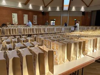 Viele fleißige Hände haben rund 1.000 Päckchen für die älteren Mitbürgerinnen und Mitbürger gepackt, die noch bis Mitte Dezember von über 90 ehrenamtlichen Helfern im gesamten Stadtgebiet verteilt werden.