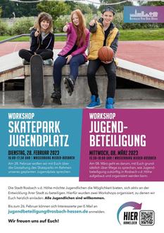 Der Skater-Workshop am 28.02. dauert ungefähr 90 Minuten. Der Workshop zur Jugendbeteiligung am 08.03. dauert circa 2 1/2 Stunden. Interessierte können sich per Email an jugendbeteiligung@rosbach-hessen.de anmelden.
