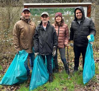 v.l.n.r.: Tim Horne, Jürgen Eckert, Jennifer Behrning und Samer Alhassan nach getaner Arbeit
