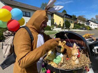 Unser Freund Klaus-Peter Leinenbach alias der „original Weilerer Osterhase“ wurde schon auf der Anfahrt gesehen, er wird hoffentlich pünktlich zu dieser Veranstaltung um 15 Uhr im Schloßpark eintreffen.