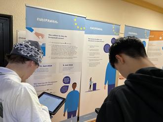 Unsere Schule hat sich aktiv in eine umfangreiche Informationskampagne eingeklinkt, indem sie die Wanderausstellung "EU on Tour" begrüßte. Schülerinnen und Schüler ab der Klassenstufe 10 wurden eingeladen, die Informationsposter zu studieren. Dabei haben sie nicht nur gelernt, warum ihre Stimme von großer Bedeutung ist, sondern auch, wie sie in wenigen Monaten aktiv an der Wahl teilnehmen können.