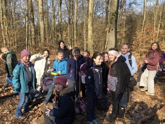 Bereits zum zweiten Mal konnten Schüler*innen des Geschwister-Scholl-Gymnasiums Lebach einen aktiven Beitrag für Nachhaltigkeit und Umweltschutz leisten. Die Klassen 6e und 7d starteten gemeinsam mit ihren Lehrerinnen Frau Müller-Warken und Frau Müller per Saarbahn nach Lebach-Landsweiler. Von der Haltestelle aus ging es dann zu Fuß in den Wald, wo sowohl ein Mitarbeiter des Saarforstes als auch Herr Ruschel und seine Mitarbeiter die Klassen in Empfang nahmen. Ebenso machten sich die Klassen 5e und 6a gemeinsam mit Herrn Sion und Frau Pink-Müller auf den Weg nach Landsweiler. Dieser Gruppe bot sich noch eine tierische Chance: sie durften Alpakas aus direkter Nähe beobachten und füttern, nachdem Herr Spaniol, der Besitzer, allerlei Wissenswertes über die Tiere mitteilte.