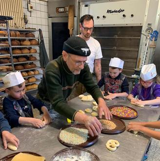 Danach wurden die Kinder der Kita alle in die Backstube der Bäckerei eingeladen, um beim Kneten und Backen so richtig aktiv zu werden. So fühlten sich die Kinder wie echte kleine Bäckerhelden.