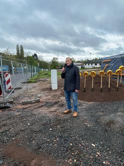 Ortsvorsteher Karl Barrois beim Spatenstich
