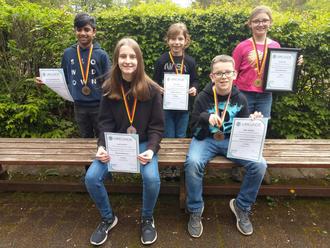 Die Teilnahme an der Mathematikolympiade hat am Geschwister-Scholl-Gymnasium Lebach eine lange Tradition. Jedes Jahr beteiligen sich zunächst in der Hausaufgabenrunde zahlreiche Schülerinnen und Schüler, die das Knobeln und Tüfteln an spannenden Mathematikaufgaben mögen. Viele von ihnen qualifizieren sich für die Landesrunde und kommen von dort mit beachtlichen Erfolgen zurück (v.r.n.l.. 2. Reihe): Eine Goldmedaille für ihren 1. Platz erhielt Emilie Diel aus Klassenstufe 5. Vier Bronzemedaillen gab es für Ben Fass (Kl. 5), Arju Prashantakumar (Kl. 6), (v.r.n.l. 1. Reihe) Max Wagner (Kl. 6) sowie Lara Scherer (Kl. 7). Lara Scherer wurde zudem in das Förderprogramm „Jugend trainiert Mathematik“ aufgenommen.