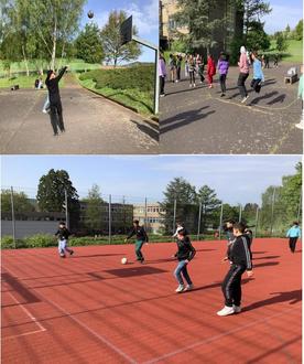 Kein Streit, keine Ausgrenzung oder Langeweile - stattdessen Spiel, Spaß und eine heitere, freundliche Stimmung! So lässt sich das Bild auf dem Schulhof der Theeltalschule Lebach beschreiben. Seit gut einem Jahr praktiziert die Gemeinschaftsschule das Konzept "Bewegte Pause", bei dem in bestimmten Bereichen des Schulhofs Sport und Spiel stattfindet. Dabei wählen sich die Schüler*innen selber aus ob sie an den Basketballkörben werfen, Tischtennis spielen, Seilspringen oder sich irgendetwas anderes aus der großen Kiste holen, die von den Sportmentoren (Schüler*innen der Klassenstufen 9 und 10) zu Beginn der Pause rausgestellt und am Ende wir reingebracht wird. "Die bewegte Pause ist mittlerweile ein richtiges Erfolgsmodell", so Benjamin Schmitz, der stellvertretende Schulleiter, der auch viele Sportveranstaltungen der Schule koordiniert. "Natürlich geht das Ganze nicht ohne Regeln. So haben wir bestimmte Bereiche wo gespielt wird und unsere Sportlehrer sind immer wieder selber in der Pause dabei und leiten das ein oder andere Spiel an. Aber es ist schön zu sehen, wie friedlich und harmonisch alle ihre Pause verbringen und sich ein Großteil der Kinder dabei noch sportlich betätigt", so Schmitz.