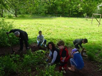 Auch vor der Krippe und der Sonnengruppe wurde Ordnung geschaffen, Nutzgarten und Hochbeete wurden aktiviert, ebenso unser Kartoffelacker auf der Ziegenwiese.