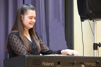 Musikalisch umrahmt wurde der Empfang von Sophia Brandt aus Lebach. Sophia ist 16 Jahre alt und seit ihrer Geburt blind. Bereits mit 4 Jahren hatten die Eltern Sophias Begeisterung zur Musik erkannt und sie fortan gefördert und gefordert. Sophia begeisterte ihr Publikum am E-Piano mit Werken von Joseph Haydn, Friedrich Burgmüller, Ludovico Einaudi und Wolfgang Amadeus Mozart. Alle Anwesenden waren mehr als begeistert und Sophia war zweifelsohne das absolute Highlight des Empfanges, und weil‘s so schön war spielte sie nach dem offiziellen Teil noch leichte Hintergrundmusik zur weiteren Unterhaltung.