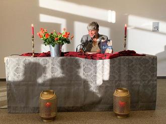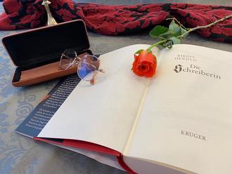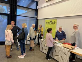 Für die Lesung hatte Birgit Herold nicht nur das Koßmannforum wunderbar stimmig hergerichtet, sondern es gab auch einen Tisch mit Ausgaben der Bücher der echten Clara Hätzlerin, sowie jeder Menge Infos zum Schreiben im Mittelalter, von der Herstellung der Tinte aus Galläpfeln hin bis zum Schrieben mit Gänsekiel, an dem sich die Besucherinne und Besucher auch selbst versuchen durften. In Anschluss an die Lesung herrschte reger Andrang am Büchstand der Buchhandlung Anne Treib und Birgit Herold signierte die frisch erworbenen Exemplare.