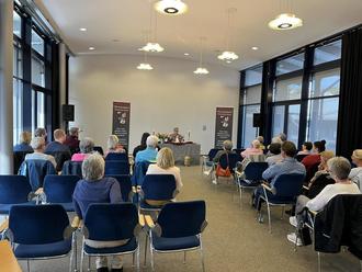 Im voll besetzten Koßmannforum stellte die Eppelborner Autorin Birgit Herold am 28. Mai ihren ersten Roman vor. „Die Schreiberin“ handelt von Clara Hätzlerin, der einzig historisch belegten Frau, die ihren Lebensunterhalt als Lohnschreiberin verdiente. In einer Zeit des medialen Umbruchs vom Spätmittelalter in die Moderne konfrontiert Birgit Herold ihre Protagonistin mit privaten und gesellschaftlichen Herausforderungen und zeigt mit historischer Präzision, welche wirtschaftlichen Möglichkeiten Frauen in dieser Zeit offenstanden. Im Anschluss an die ausgewählten Textstellen gab Birgit Herold spannende Einblicke in den Entstehungsprozess ihres Werkes, von der jahrelangen historischen Recherche, ihren Schreibprozess bis zum Finden eines Verlages.
