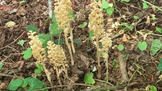 Über dreißig Exemplare der Orchideenart Waldvögelein (Cephalanthera damasonium) erblühten, hinzu kommen einige Dutzend Nestwurzpflanzen (Neottia), eine chlorophyllose Orchidee. Als ständige Begleiter zeigen sich Zweiblatt (Listeria ovata) und Einbeere (Paris quadrifolia), Immergrün (Vinca minor), u. a.