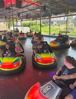 Am 19.06.23 war es soweit. Die SchülerInnen der Rothenbergschule folgten der Einladung von Alexandra Glowna und Rolf Gemmel. Gemeinsam fuhren wir mit den Ober-und WerkstufenschülerInnen der Rothenbergschule zur Kirmes nach Thalexweiler. Dort begrüßten uns die Beiden schon herzlich mit stimmungsvoller Musik. Unsere SchülerInnen waren kaum zu bremsen und durften sofort die Autoscooter ausprobieren. Dann ging die wilde Fahrt los und alle hatten riesigen Spaß. Zum krönenden Abschluss spendierte uns der Bouleclub Thalexweiler noch ein leckeres Eis.