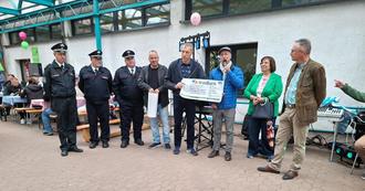 Bei der offiziellen Eröffnung hieß der Geschäftsführer der Lebenshilfe Neunkirchen, Herr Latz, alle Besucher recht herzlich willkommen. Insbesondere dankte er der Kolpingsfamilie Dirmingen, die auch in diesem Jahr wieder das Nachbarschaftsfest mit ausrichtete und dem Fanfarenzug der KF Humes, der seit vielen Jahrzehnten zum Nachbarschaftsfest aufspielt. Auch all die anderen stillen Mithelfer/innen bezog er seine Dankesworte mit ein. Dem schloss sich auch der Leiter der Schule, Peter Engel, an, der das Nachbarschaftsfest als eine konstante Größe und Großereignis im Dirminger Dörfchen bezeichnete. Der Vorsitzende der Kolpingsfamilie, Hans-Peter Hoffmann, wies in seinem Grußwort daraufhin, dass es um den Zusammenhalt und das Miteinander unter allen Beteiligten bestens bestellt ist. „Mit Freude und mit Herzblut sind wir auch in diesem Jahr dabei, wenn es gilt, die Rothenbergschule zu unterstützen“, so der Vorsitzende der Kolpingsfamilie. Gleichzeitig bedankte er sich für das ehrenamtliche Engagement seiner Mitglieder und deren Helfershelfer/innen sowie dem Team der Schule. Zur Freude aller überreichte er dem Schulleiter einen Scheck in Höhe von 2.546,45 € aus dem Reinerlös des vergangenen Nachbarschaftstestes.