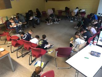 So kamen die Klassen 5a und 5c am Mittwoch, den 24.5., und die Klassen 5d und 5e am Donnerstag, den 25.05., gemeinsam mit ihren (Co-)Klassenlehrer*innen Frau Pink-Müller, Herr Augustat, Frau Radau-Lambert, Frau Dinger, Frau Theobald, Frau Müller-Warken und Herr Spranger in den Genuss, einmal nachts allein im Schulgebäude zu sein, in Klassenzimmern ein Luftmatratzenlager aufzuschlagen und gemeinsam zu lesen, bis die Augen vor Müdigkeit zufielen.