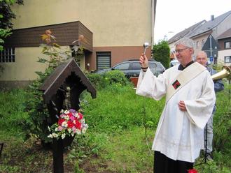 Am Mittwoch, dem 19. Juni fand im Rahmen der Eucharistischen Andacht die Einweihung des Wegkreuzes im Pfarrgarten statt.