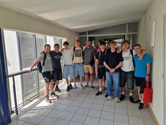 Bildunterschrift: vlnr. Luca Hesidenz, Jonas Steffen, Mathis Lang, Nils Zimmer, Dozent Michael Mattern, Johannes Alles, Leon Groß, Raik Groß, Alexander Würtz, Arthur Bartolomä und Max Mörsdorf