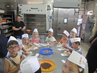 Danach wurden die Kinder der Kita alle in die Backstube der Bäckerei eingeladen, um beim Kneten und Backen so richtig aktiv zu werden. So fühlten sich die Kinder wie echte kleine Bäckerhelden.