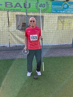 Nun gab es einen weiteren Grund zu jubilieren. Bei den Saarlandmeisterschaften der Senioren in Ludweiler gewann Philipp Müller in den Disziplinen Kugelstoß und Speerwurf und wurde zudem noch im Diskuswurf Drittplatzierter. Der für den TV Lebach startende Philipp Müller erreichte dabei im Kugelstoßen eine Weite von 8,13 Meter, was deutschlandweit Platz 15 in der Jahresbestenliste in der Wertungsklasse M85 bedeutet. In der Disziplin Speerwurf bedeutet seine Siegesweite von 17,60 Meter Platz 17 in der Jahresbestenliste. Gekrönt wurde seine hervorragende Leistung mit dem 3. Platz im Diskuswurf, hier erreichte Philipp eine Weite von 13,48 Meter.