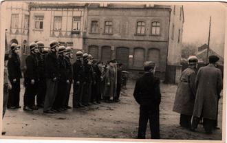 Jahresabschlussübung 1947 – Antreten Marktplatz in der Dorfmitte.