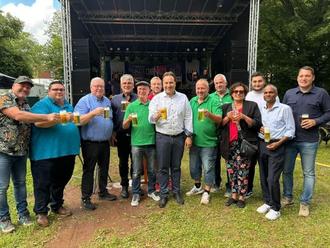 Das diesjährige Park- und Strandfest am 13./14. Juli 2024 sprengte alle gesetzten Erwartungen. An beiden Festtagen strömten zahlreiche Gäste aus der gesamten Region in den beschaulichen Brühlpark in unserer Ortsmitte. Neben einem großartigen Bühnenprogramm wurde an den Verkaufsständen der teilnehmenden Vereine und Organisationen viele kulinarische Köstlichkeiten angeboten. Der Kulturverein Dirmingen hat keine Kosten und Mühen gescheut, um den Menschen eine Freude zu bereiten. An beiden Festtagen war die Veranstaltung außerordentlich gut besucht. Ich möchte mich an dieser Stelle beim Kulturverein Dirmingen und den vielen teilnehmenden Vereinen und Organisationen bedanken. Ein weiterer Dank geht an die vielen Helferinnen und Helfer sowie an alle Besucherinnen und Besucher. Das Bühnenprogramm fand beim Publikum einen riesengroßen Anklang. Neben vielen etablierten Bands und Gruppen kamen auch Nachwuchskünstler und Talente zu ihrem Auftritt. Musikalisch wurde für jeden Geschmack das passende angeboten. Ein Dankeschön geht an dieser Stelle auch an die evangelische Kirchengemeinde St. Wendel- Illtal und an die katholische Pfarreiengemeinschaft Eppelborn-Dirmingen. Gemeinsam mit Bürgermeister Dr. Andreas Feld, der als Schirmherr der Veranstaltung fungierte, durfte ich den Fassanstich zelebrieren. Natürlich habe ich auch in diesem Jahr das Park- und Strandfest mit finanziellen Mitteln unterstützt. Aus meinem vorhanden Sparkassen- Budget durfte ich dem Vorsitzenden des Kulturvereins Reimund Klein eine Spende in Höhe von 250, -€ überreichen.
