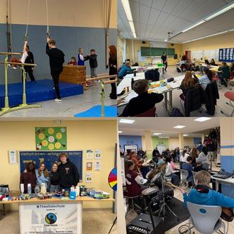An der Gemeinschaftsschule Theeltalschule Lebach fand am Samstag, 10.01.2026, der Tag der offenen Tür statt. Trotz schlechter Witterungsbedingungen mit neu einsetzendem Schneefall besuchten Grundschulkinder und Eltern die Schule, erlebten einen spannenden Vormittag und konnten das gesamte Schulhaus inklusive der Nachmittagsbetreuung und der Talent Company kennenlernen. Der Fokus an Unterrichtsbesuchen lag dieses Mal auf dem Jahrgang 5, wo die Schüler mit ihren Lehrern motivierenden, innovativen Unterricht zeigten und die Gäste auch zum Mitmachen einluden. Daneben präsentierte sich der Sportbereich wie gewohnt mit einem Ninja-Parcours in der Sporthalle und die Fair-Trade AG der Schule im Foyer. Dort zeigte sich zudem in der Zeit von 10:45 - 11:15 Uhr der musisch-kulturelle Bereich mit einem tollen Auftritt der Klasse 6b und ihrem neuen, in Form von Klassenmusizieren einstudierten "Amadeus-Medley" und die Schüler-Band des Jahrgangs 10 mit ein paar Stücken aus ihrem Repertoire. Gastronomisch versorgte der Förderverein die Gäste mit einem reichhaltigen Kuchenbuffet, Wiener Würstchen und Getränken!