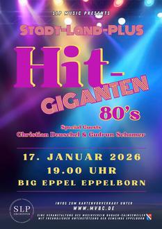 Begleiten Sie das „Stadt-Land-PLUS“ Orchester unter der Leitung von Chrisitan Deuschel bei ihrem rasanten Trip durch die Welt der Schulterpolster, Neonfarben, Jeans und Lederjacken. Freuen Sie sich auf ein buntes Konzerterlebnis für alle Sinne. Samstag 17. Januar – 19:00 Uhr im Big Eppel, ich hoffe wir sehen uns.