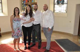 Herzlichen Glückwunsch zur Taufe von Marah Schorr mit ihren Eltern Daniel und Jaqueline Schorr und den Paten Jasmine Kempf und Jens Six