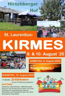 Bald ist es wieder soweit, die diesjährige Kirmes findet am zweiten Wochenende auf dem Hirschberger Hof statt. Ich bin froh, hier wieder die Unterstützung von Familie Eckert zu erhalten, die diese Tradition am Leben lassen.
