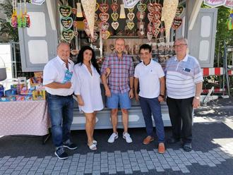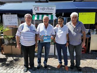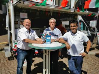 Unser Foto zeigt den Stand „Café d‘italia, der auch Salsiccia anbot mit Giacomo Santalucia und Ortsvorsteher Berthold Schmitt sowie Günter Schmitt, Gewerbeverein Eppelborn.