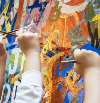 Wir spannen die Leinwand für Euch auf, haben Acryl-Farben, Pinsel und Wasserbecher vorbereitet, und damit die Kleidung keinen Schaden nimmt, stellen wir T-Shirts bereit, die ihr überziehen könnt.